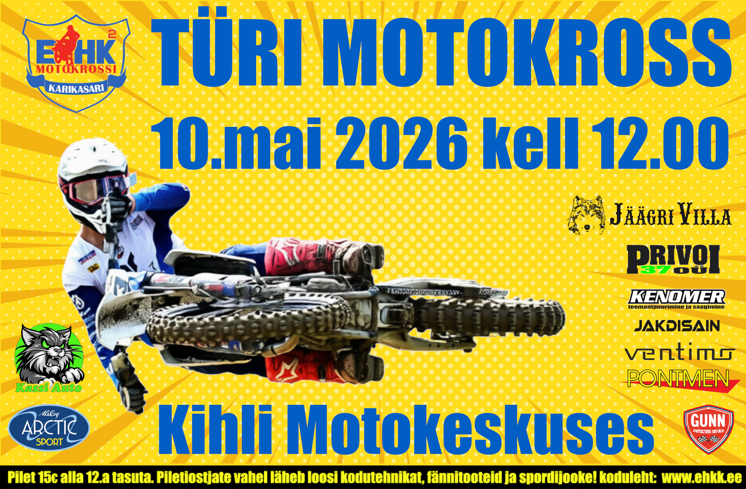 Eesti suurim motokrossisari toob Järvamaale, Kihli Motokeskusesse käesoleva hooaja teise etapi. Päev täis põneva võidusõitu, mudilaste ja veidi suuremate võistlusi publikualal. Kohapeal töötab välitoitlustus parimate paladega ja A.Le Coq tootevalikuga. Tule naudi adrenillinirohket võistluspäeva värskes õhus!